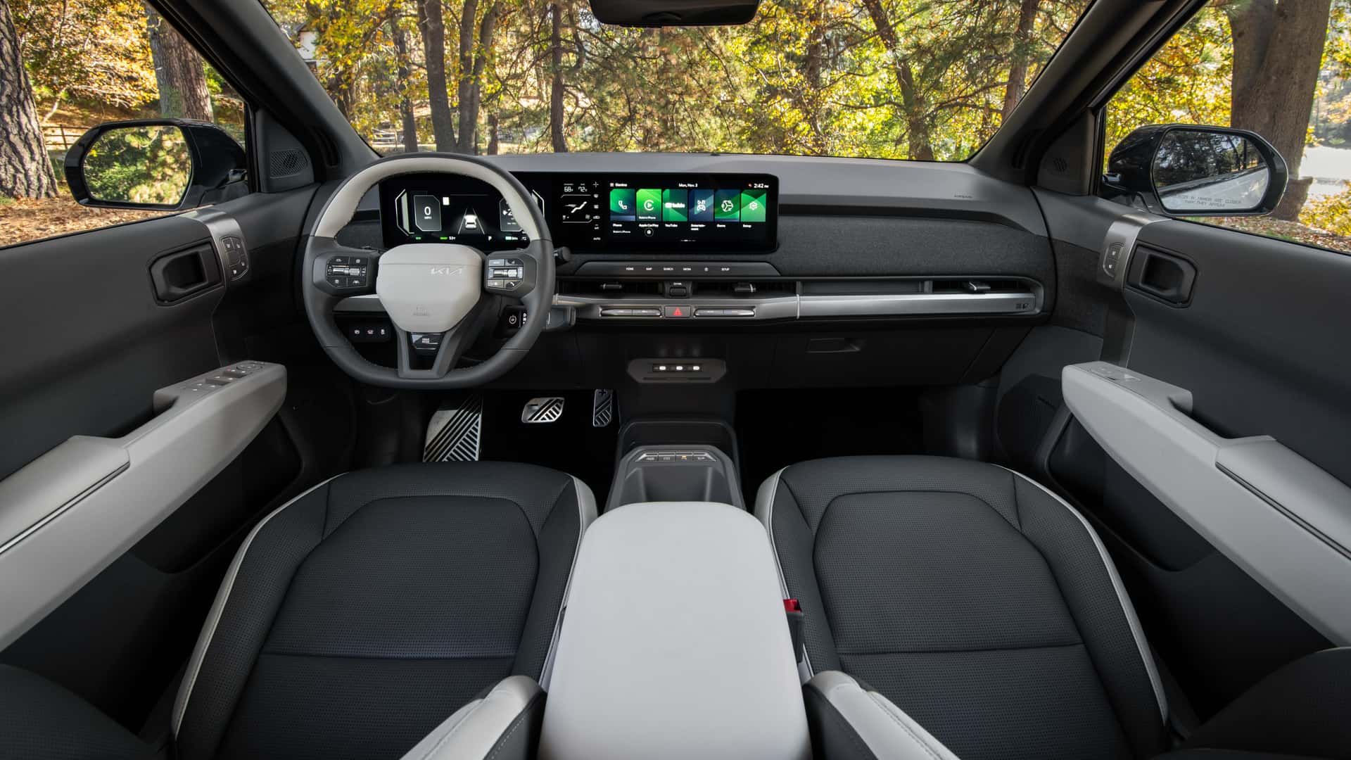 The EV3 is a baby EV9 with up to 320 miles of Kia-estimated range, available all-wheel drive, bidirectional charging, and a Tesla-style NACS plug for seamless Supercharger access. The base model will get more like 220 miles, Kia says. It is indeed smaller than its siblings, but I don’t think it’s too small either. I’m 5'7" and Maddox Kay, our social media manager, is 6'2". We were both perfectly happy with the headroom and legroom in the back.